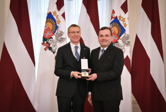 Augstākās tiesas priekšsēdētājs piedalās Eiropas Savienības karoga pacelšanā Rīgas pils tornī