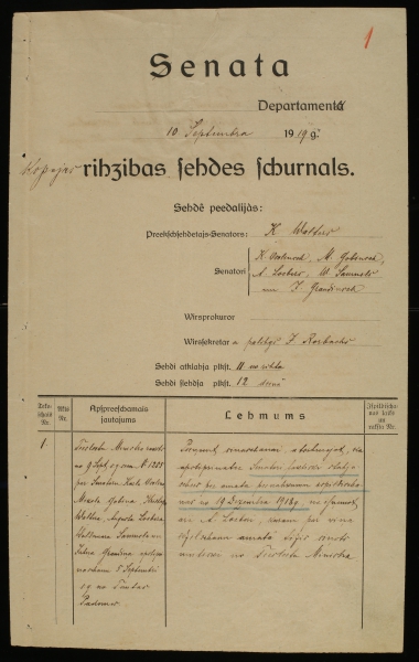 These materials will be useful not only for the Supreme Court to continue the work and traditions of the Senate of the Republic of Latvia, but also for other judicial authorities and the judicial system as a whole – to study the historical facts and ensure the continuity of the basic principles of the judicial system. Materials could also be useful in the work of Latvian historians specialized in the field of law. The joint work of the Supreme Court and the National Archives, making the Senate documents readily available in digital form, is a gift to Latvian lawyers in the centenary of the Senate of Latvia.