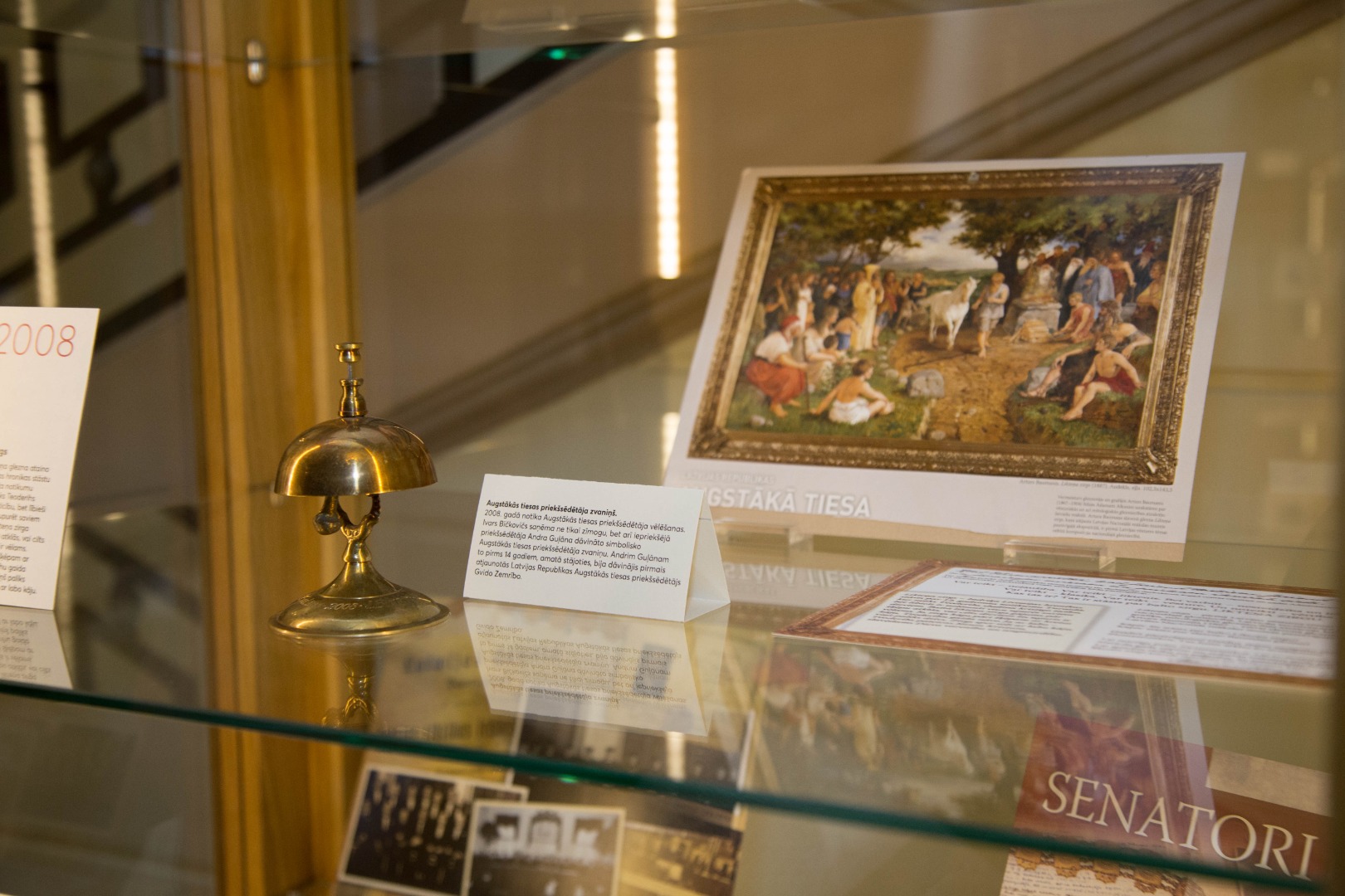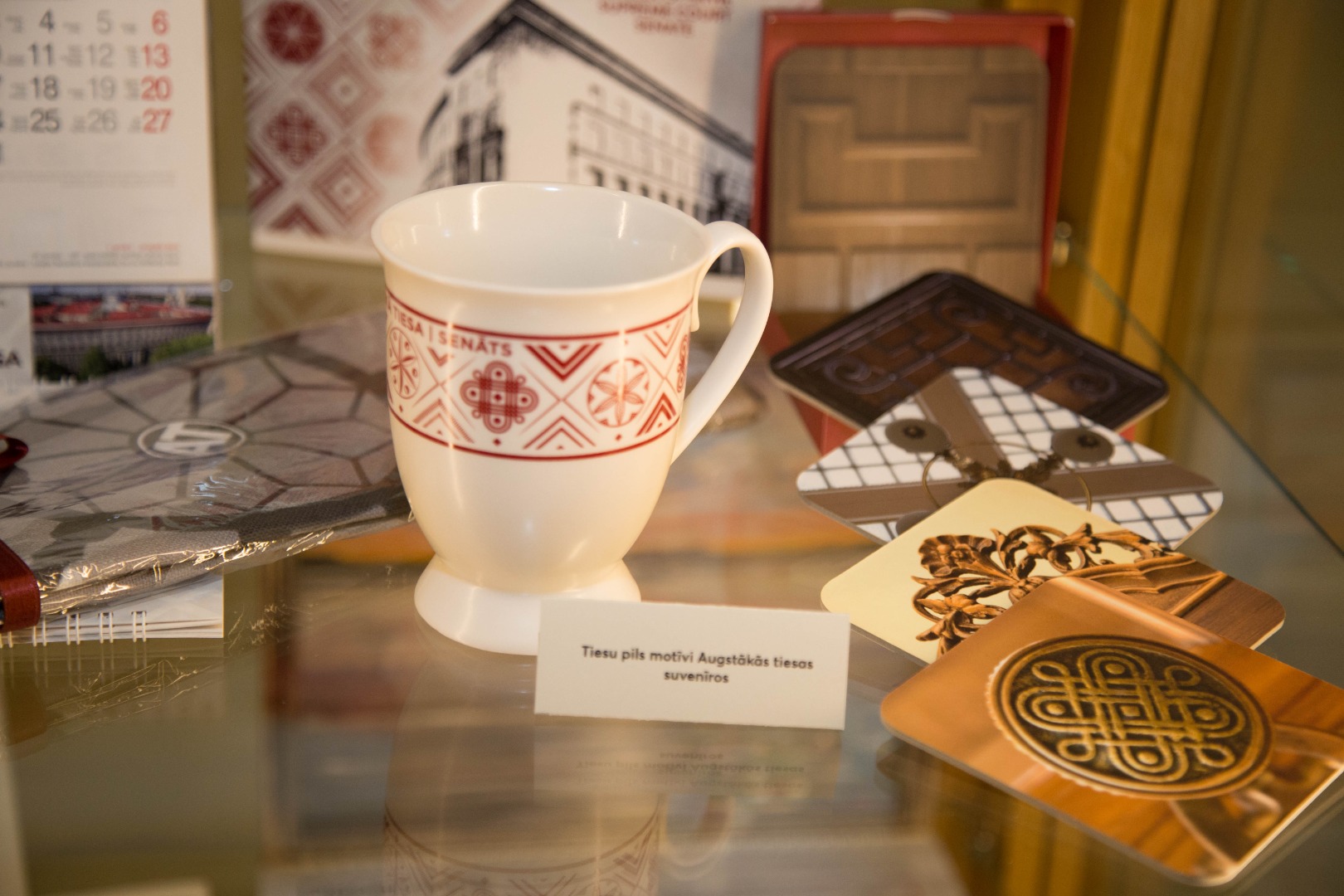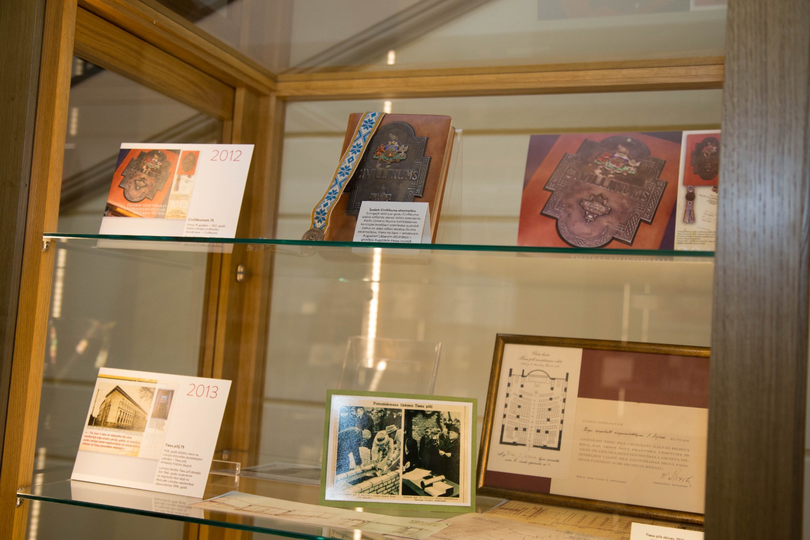 Tā, piemēram, skatot kalendāru ar Tiesu pils skulptūras “Taisnība” attēlu, var novērtēt, kādi vēl darbi 1938. gadā bija iesniegti skulptūras konkursam. Vai arī, kalendāram, kas bija veltīts Tiesu pils vēsturei, līdzās stāv ielūgums un vietu karte Tiesu pils svinīgajam atklāšanas aktam 1938. gadā. Kalendāru, kas bija veltīts Civillikuma jubilejai, papildina šī likuma greznais eksemplārs – ādas apvalkā, ar metāla apkalumu – viens no trīspadsmit, ko prezidents Ulmanis 1937. gadā dāvināja likuma izstrādātājiem.