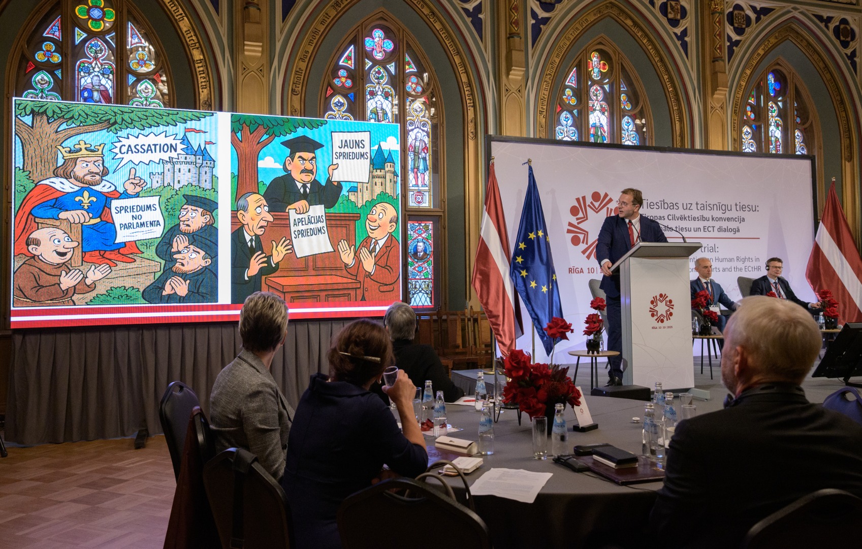 Konferencē cilvēktiesības tika skatītas caur tiesību uz taisnīgu tiesu prizmu, un tas tika darīts “gan ar mikroskopu, gan teleskopu” – gan iedziļinoties detaļās, gan šos jautājumus skatot plašos mērogos.