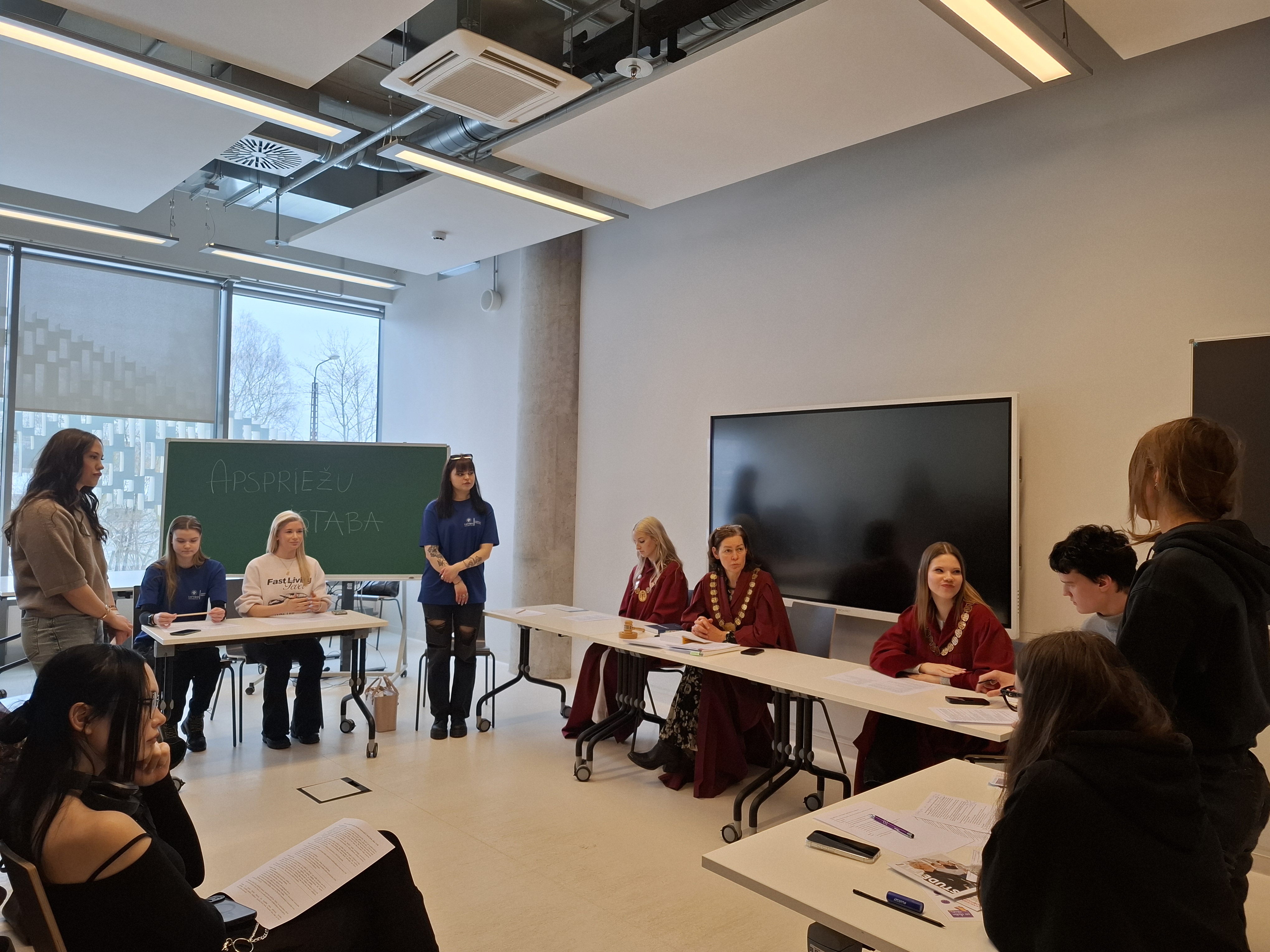 20.februārī studiju festivālā Universs@LU skolēniem un topošajiem juristiem bija īpaša iespēja – kā dalībniekiem piedalīties tiesas procesa izspēlē, kuru vadīja Augstākās tiesas Civilietu departamenta senatore Marika Senkāne. Dalībnieku uzdevums bija atrisināt strīdu par atgadījumu veikalā, kur pircējam uz kājas bija uzkritušas aukstuma vitrīnas durvis.