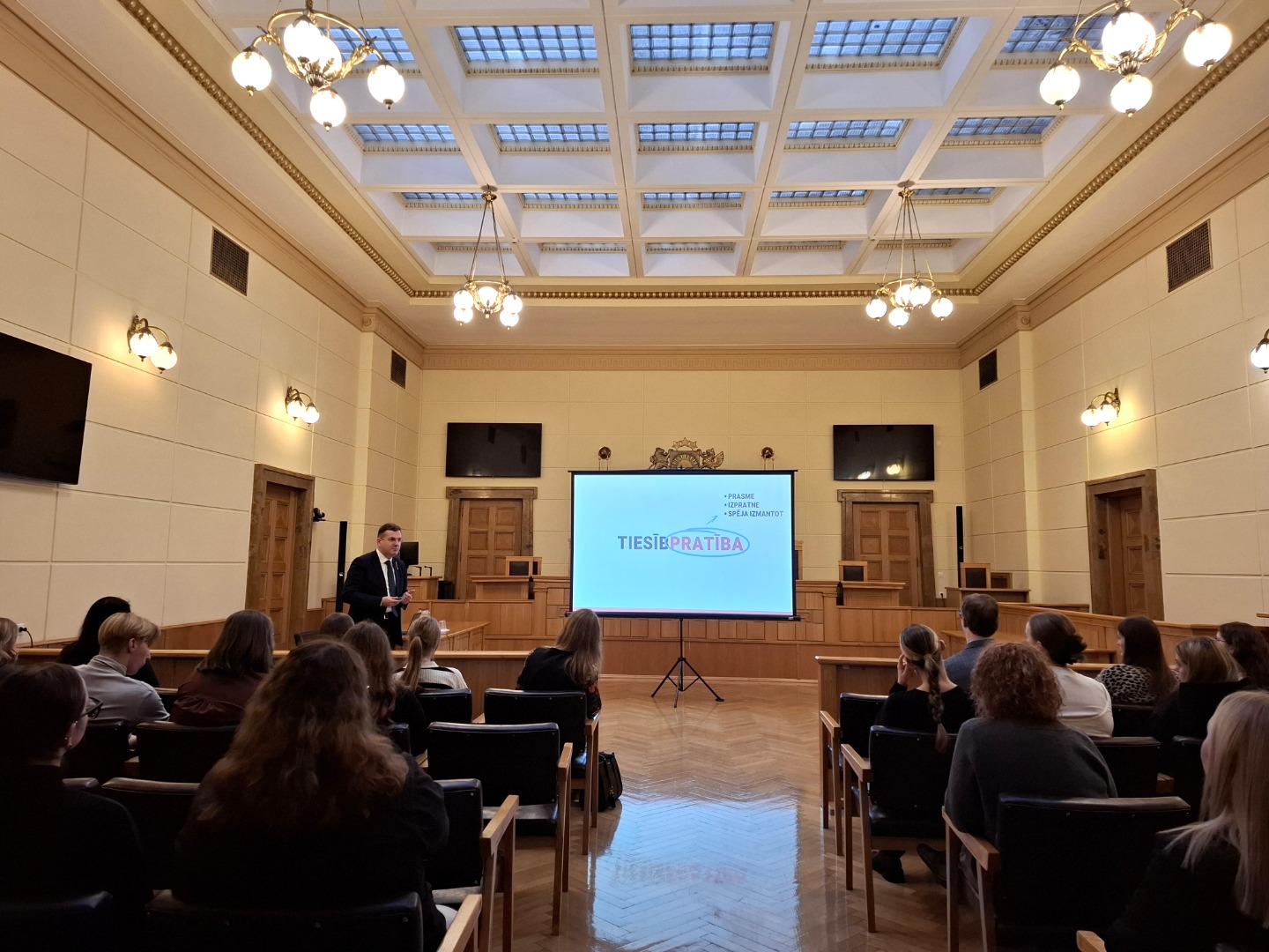 Senāta Administratīvo lietu departamenta senators Jānis Pleps sarunā ar studentiem pievērsās tiesībpratības nozīmei – tam, cik būtiski ir zināt savas tiesības un pienākumus, lai spētu tās aizstāvēt. Viņš arī sniedza ieskatu Latvijas tiesu sistēmas uzbūvē un tiesneša profesijā, kā arī pastāstīja par Satversmes tiesas, Eiropas Savienības Tiesas un Eiropas Cilvēktiesību tiesas darbību.