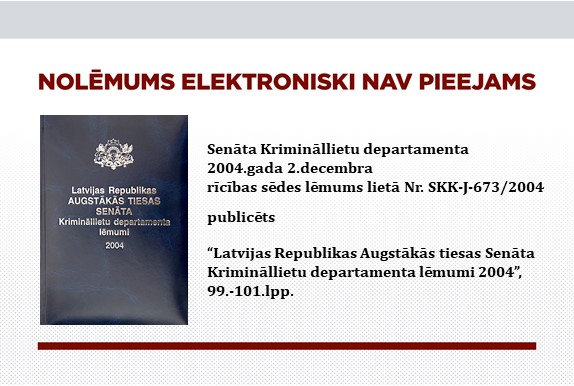 Senāta Krimināllietu departamenta lēmums lietā Nr. SKK-J-238/2011
