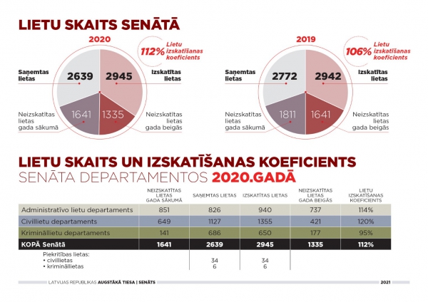 At the beginning of 2020, there were 1641 pending cases in the Senate, 2639 cases were received during the year. At the end of the year, 1335 cases were pending.