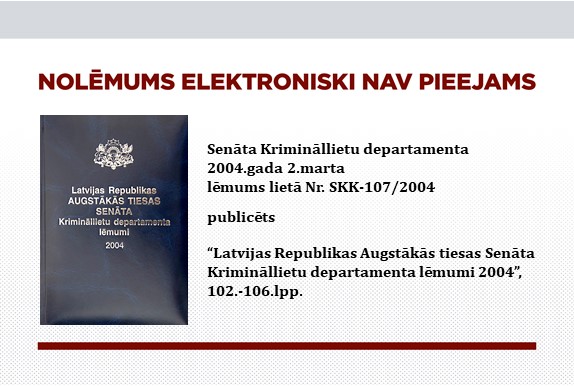 Senāta Krimināllietu departamenta lēmums lietā Nr. SKK-526/2011