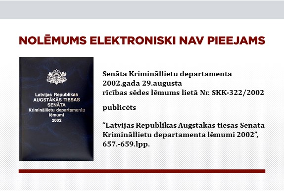 Senāta Krimināllietu departamenta rīcības sēdes lēmums lietā Nr. SKK-322/2002