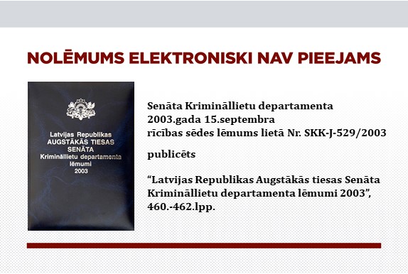 15.09.2003. Krimināllietu departamenta rīcības sēdes lēmums lietā Nr. SKK-J-529/2003