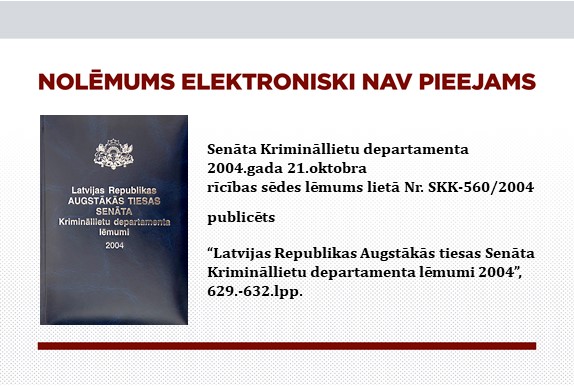 16.11.2004. Krimināllietu departamenta lēmums lietā Nr. SKK-568/2004