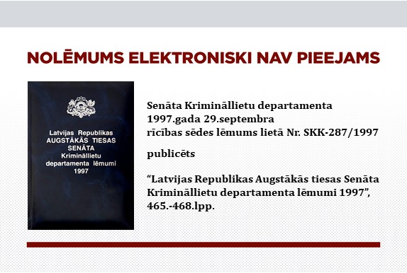 18.12.1997. Krimināllietu departamenta lēmums lietā Nr. SKK-357/1997
